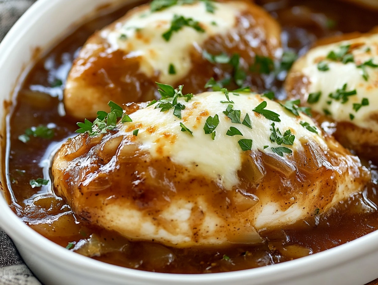 If you love the deep, savory flavors of French onion soup and the satisfying heartiness of baked chicken, this recipe will quickly become a household favorite. Imagine tender chicken breasts smothered in caramelized onions, a rich onion soup sauce, and topped with bubbly, melted mozzarella cheese. It’s like the best parts of your favorite bistro dish, but simplified for a cozy night at home. Plus, this dish is versatile, pairing beautifully with veggies, potatoes, or even a crisp side salad.