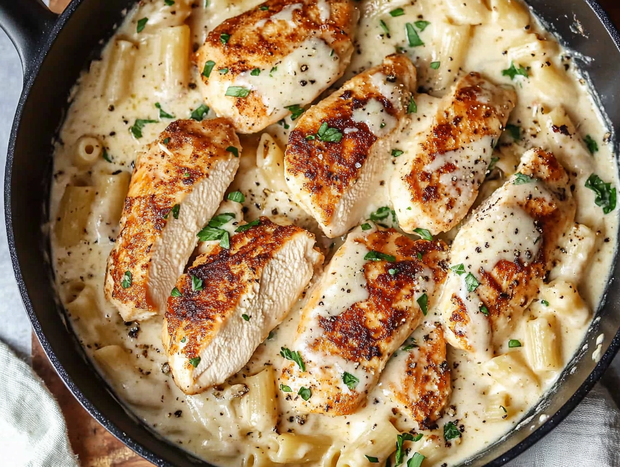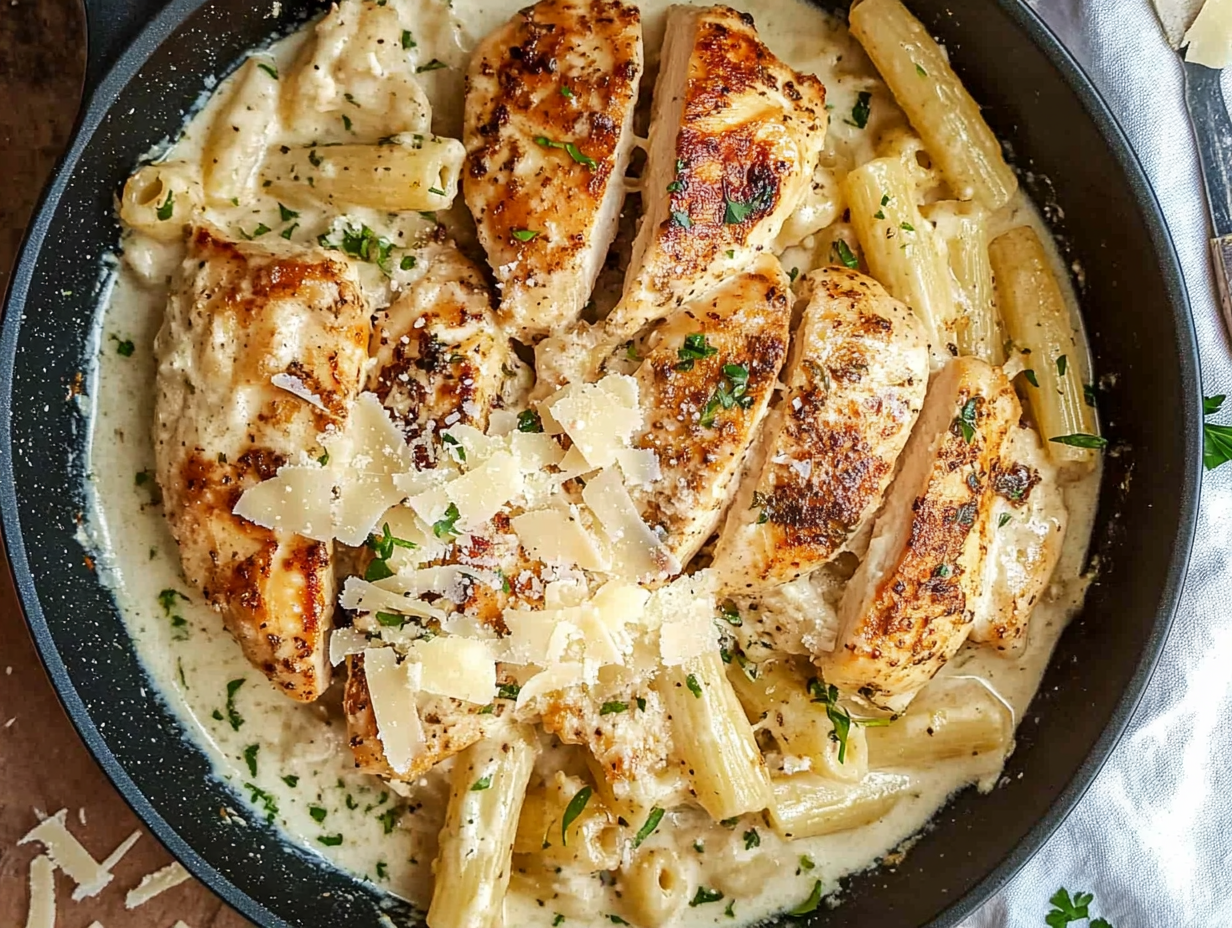 This Garlic Parmesan Chicken Pasta is a creamy and delicious pasta dish made with juicy pan-seared chicken and a rich Parmesan sauce. It’s an easy, comforting meal perfect for any night of the week.
