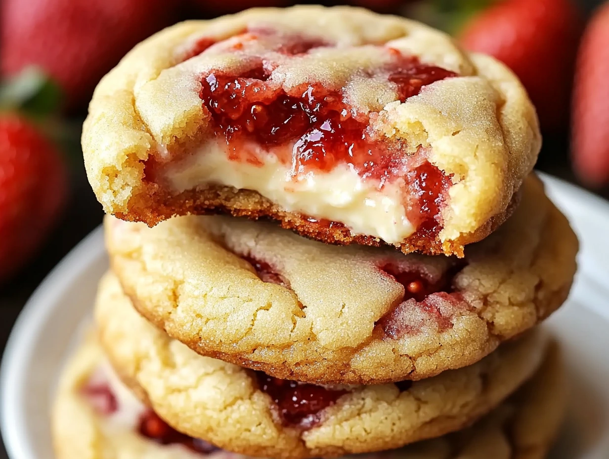 These cookies are the perfect combination of a chewy strawberry cookie and a luscious cheesecake filling. With a hidden strawberry jam surprise, they’re indulgent, fruity, and irresistibly delicious—ideal for parties, gifts, or simply treating yourself.